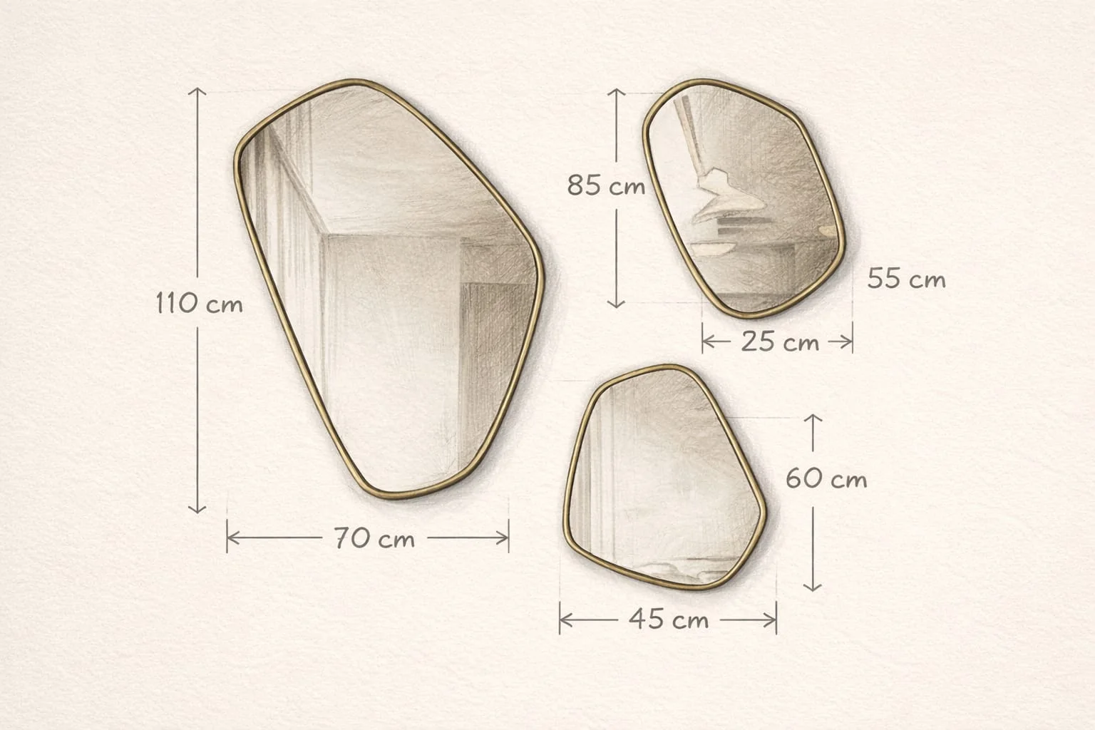 Sublimez votre intérieur avec ce pack de trois miroirs aux formes fluides et organiques. Inspirés par la nature, ces miroirs "galets" créent un jeu de lumière unique et agrandissent visuellement votre espace grâce à leur disposition asymétrique.